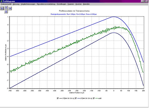 Den Kern der Auswertung der Profilmesskurven bildet die Überprüfung der Einpaßbarkeit in Toleranzschemata.